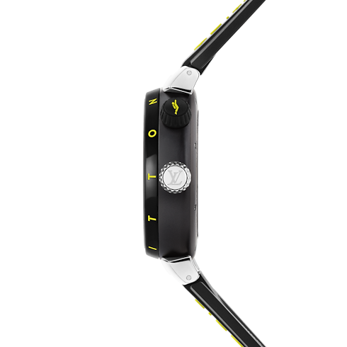 Robust and edgy, the Tambour Street Diver is the House's sportiest yet most versatile watchmaking creation. The Neon Black model showcases a modern style that is high in contrast, with black and fluorescent yellow tones complementing one another on the dial, case and strap. Combining traditional diving features with colourful, creative and unconventional design, it is pure Louis Vuitton.
