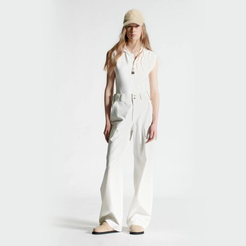 These cargo pants twist an understated tailored look with utility detailing for a chic, streetwear-forward style. Crafted from the House’s signature technical jersey in a loose straight-cut silhouette for comfortable casual wear. The sides and back are finished with large flap pockets, while the thick waistband is trimmed with adjustable tabs for a tapered fit.