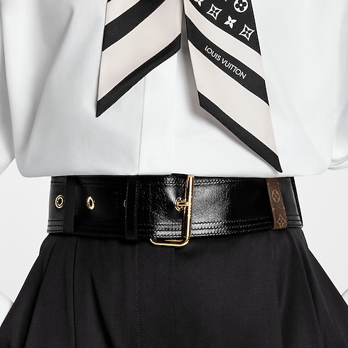 A featured accessory in the Fall-Winter 2025 show, the Trench belt updates a wardrobe classic with timeless yet contemporary style. Crafted in leather with a refined crinkled texture, its broad strap is studded with gold-colored eyelets for fashion-forward appeal and a perfect fit. The perfect addition to a sophisticated, on-trend outfit for special occasions or everyday wear.