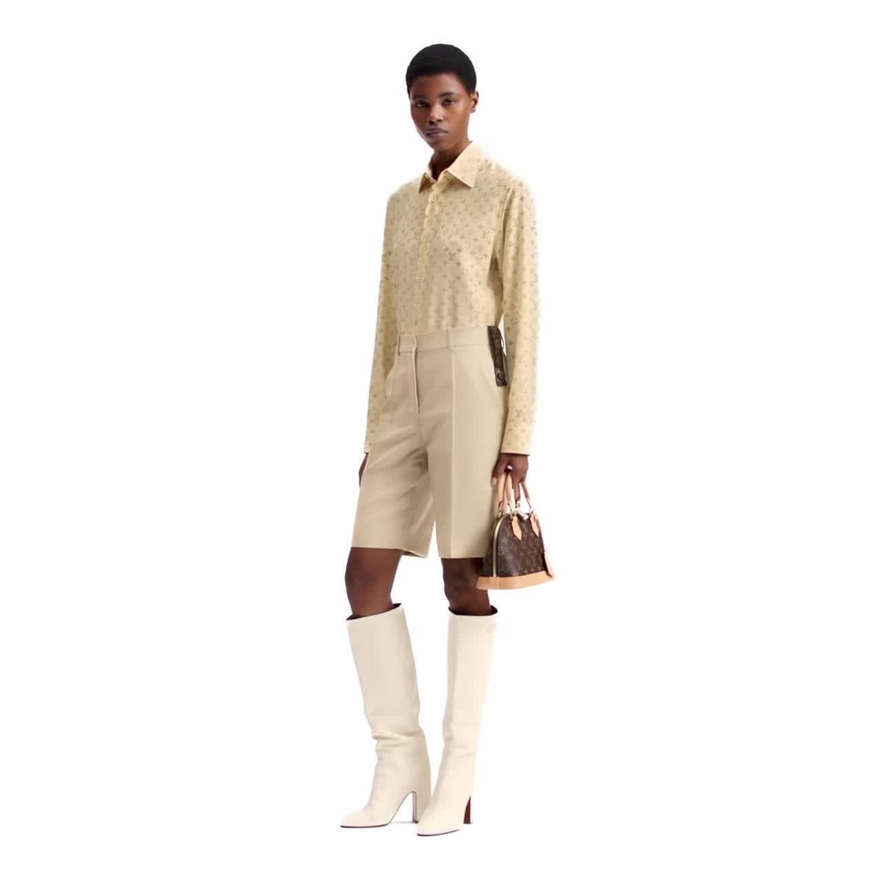 This shirt is smart and summery in a versatile straight shape cut from soft, fluid silk crepe de chine in a refined seasonal shade. It is signed all over with a print of the iconic Monogram motif in a dreamy washed finish and fastened with elegant pearly buttons.