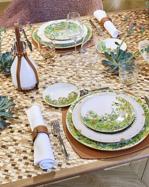 Louis Vuitton integrates the art of dining into its collection of luxury tableware, coffee cups, and tea sets, showcasing a refined lifestyle. Each piece is crafted by experienced artisans using high-quality ceramics, translucent glass, and fine metals, with meticulous attention to detail, from the rim of the cup to the handle of the teapot. The enduring dining essentials are unmistakable with emblematic adornments, offering both visual and gustatory enjoyment. The collection includes iconic dinnerware from the Monogram Floral Tile, beachside tableware from LV By The Pool, coffeeware from Constellation, as well as the Twist Glasses and Carafes. Through dining accessories like mugs, plates, and bowls, users can savour the delicate nuances of gourmet cuisine and fine teas, providing a luxury dining or tea experience.