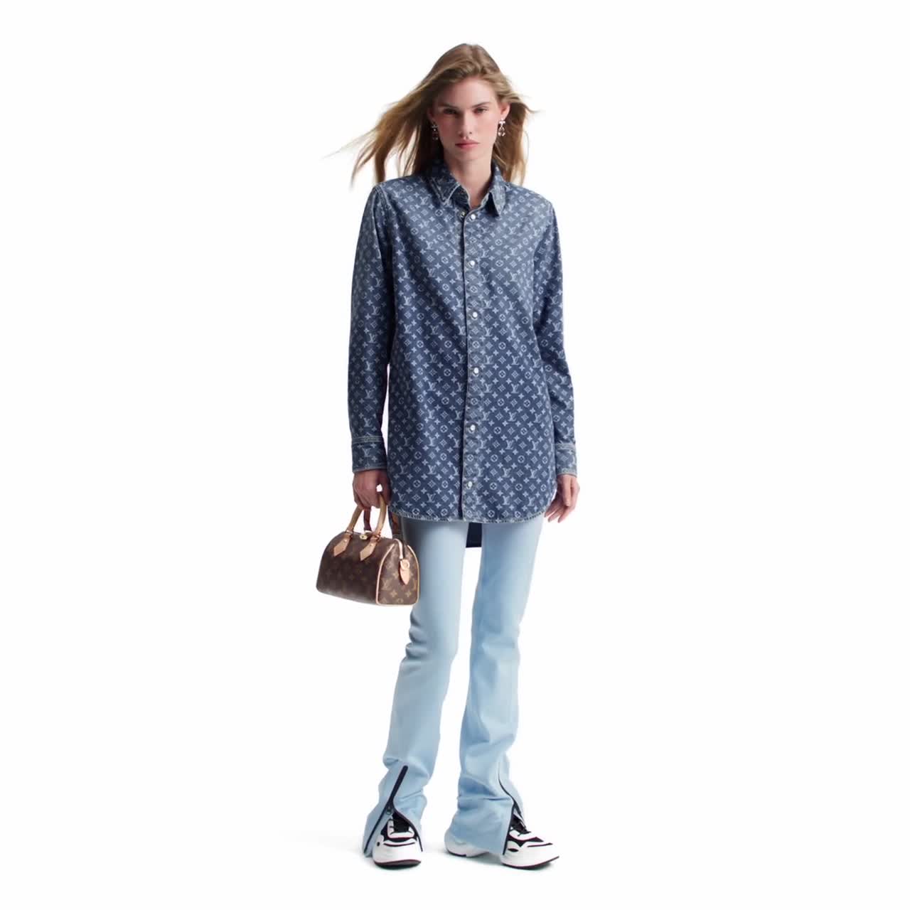 Terbuat dari material denim ringan dengan motif ikonis Monogram di seluruh permukaannya, kemeja ini menyajikan nuansa khas musim panas. Desainnya yang berpotongan lurus dan longgar berkesan santai saat dikenakan sehari-hari, sementara kerah rapi serta pergelangan tangan berkancing menghadirkan sentuhan busana bergaya klasik.