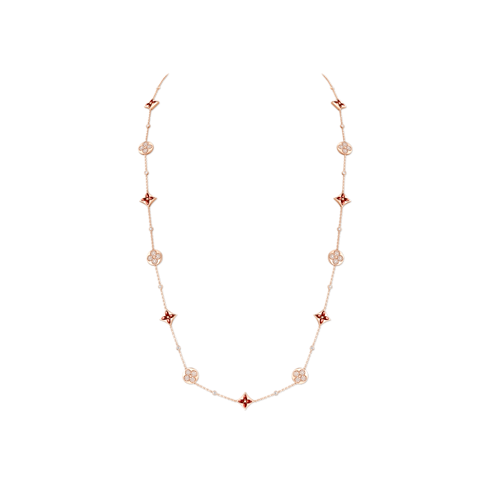 路易威登高級珠寶系列提供多款以貴金屬打造的 K 金頸鏈,包括亮澤典雅的白金頸鏈、溫柔浪漫的玫瑰金頸鏈,以及氣度非凡的黃金頸鏈。其中,Idylle Blossom 系列以多種金色巧手雕琢而成,部分款式更採用三色金設計,並綴以璀璨鑽石,展現多元而奪目的迷人風格。