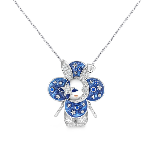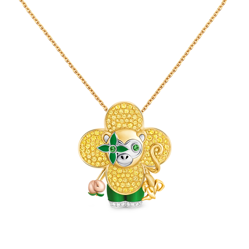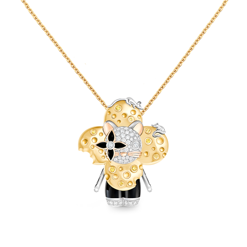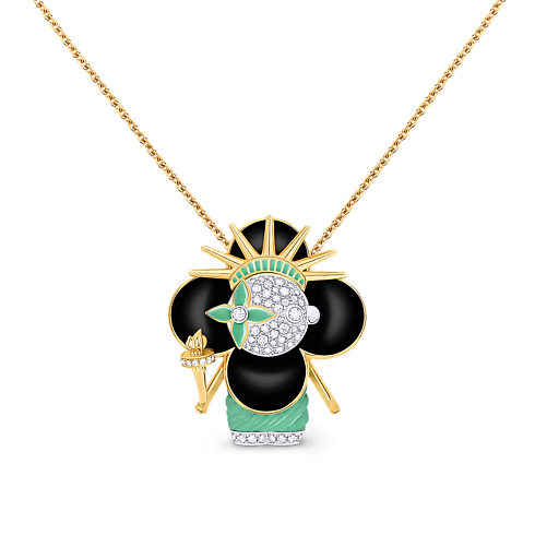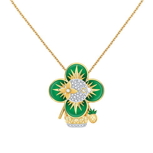 路易威登的頸鏈與吊墜系列以天然鑽石配搭 18K 黃金、白金、玫瑰金、鈦金及純銀等貴金屬匠製而成,部分頸鏈與吊墜更鑲嵌彩色寶石,展現高級珠寶的多樣性與奢華品質。