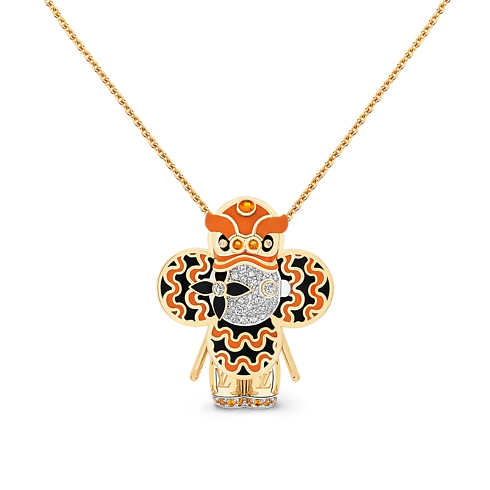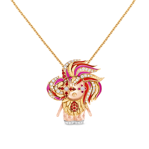 路易威登高級珠寶吊墜由工匠以黃金、白金或 18K 金精心打造,運用多種品牌代表性的設計元素,包括立體感強烈的品牌標誌、幾何花卉、Vivienne 吉祥物以及經典掛鎖造型。部分作品更鑲嵌多色寶石或璀璨鑽石,為吊墜增添層次與奢華光芒。這些鑽石吊墜及白金吊墜,均以細膩工藝呈現精緻質感,展現高級珠寶的典雅魅力。
