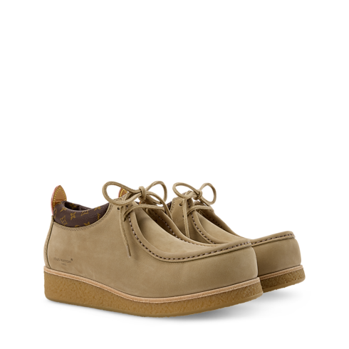 2026 早春夏男裝系列迎來全新 LV Tilted 男裝運動鞋,靈感源自 2000 年代復古滑板鞋。設計特色包括傾斜刺繡 LV 標誌、VVN 皮革鞋面、對比色外底與 Damier 鞋頭,鞋底更飾有 Monogram 花卉細節。這系列提供帆布與麂皮小牛皮版本,輕盈柔軟,舒適透氣。早春夏男裝鞋履亦延伸至 LV Remix、LV Oxford、LV Buttersoft 等系列,並新增質感皮革材質與全新配色。整體造型可配搭精品皮帶、毛帽與棒球帽等時尚配件,展現初春夏男裝的多元魅力與季節風格。