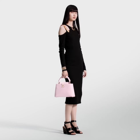 這款今季全新MiniMe系列的Capucines BB手袋配以俏麗迷人的Capucines Cutie,肩帶飾以標誌性的Monogram花卉圖案鉤扣,小巧的配飾型手袋繫掛在肩帶上,為備受愛戴的品牌標誌更添無法抵擋的魅力。手袋採用Taurillon皮革製作,並飾以珠寶般的金屬件,可輕易放置兩部手機、長銀包及其他物品。
