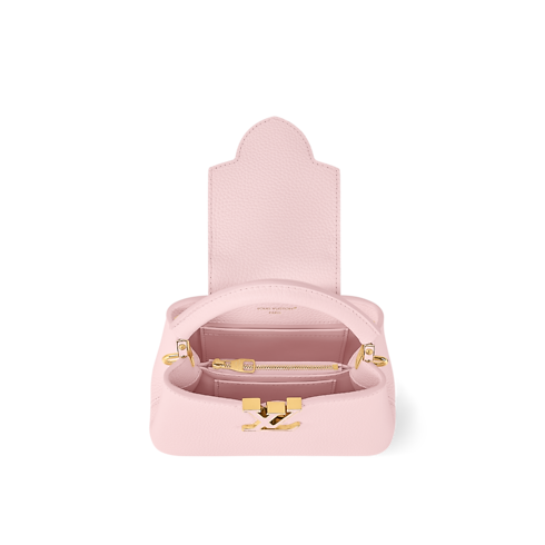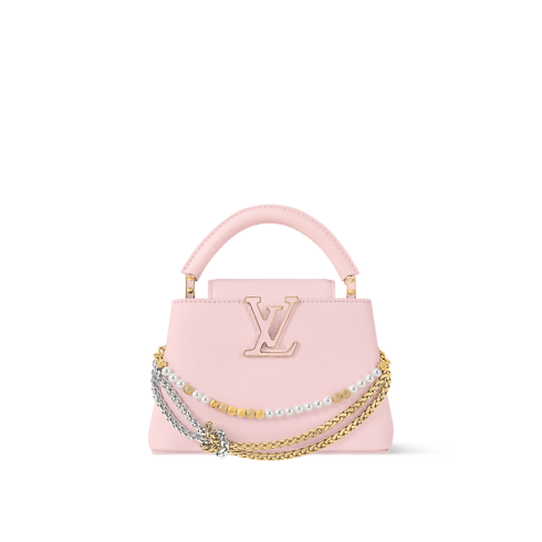 這款Capucines Mini於Why Knot系列中以柔美的Sweet粉紅色重新演繹 ,能為任何配飾珍藏注入柔美的氣息。手袋採用典雅的Taurillon皮革製造,綴以雙色電鍍金屬鏈條裝飾,並從珠寶設計中取得靈感,鏈條上點綴標誌性的Monogram圖案吊飾及精緻的珍珠細節,盡顯高雅質感。全新版本還配備加長肩帶,可隨心轉換不同的攜帶方式。