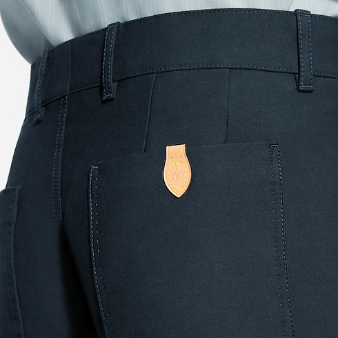 這款順滑垂軟的長褲以奢華的Navy藍色絲棉混紡雙面縐綢裁製。挑線細節為長褲營造精緻考究的西裝剪裁質感,背面褲袋飾有VVN皮革標誌細節,呼向品牌的皮革精品傳承致敬。此衣櫥必備的轉季單品可配搭同系列的套裝襯衫,演繹時尚休閒的套裝造型。