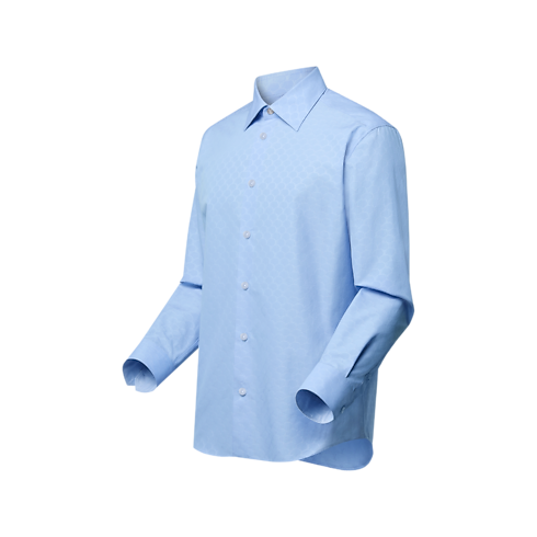 這款淺藍色長袖襯衫為正式造型增添優雅格調。襯衫選用有機提花棉布縫製,綴以略帶紋理的LV Fishnet圖案。頂端鈕扣綴以LV標誌,門襟底部綴有編織LV標誌及Monogram花卉圖案標籤。襯衫可搭配同系列西裝,打造精緻標誌性造型。