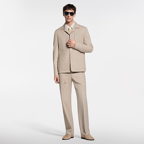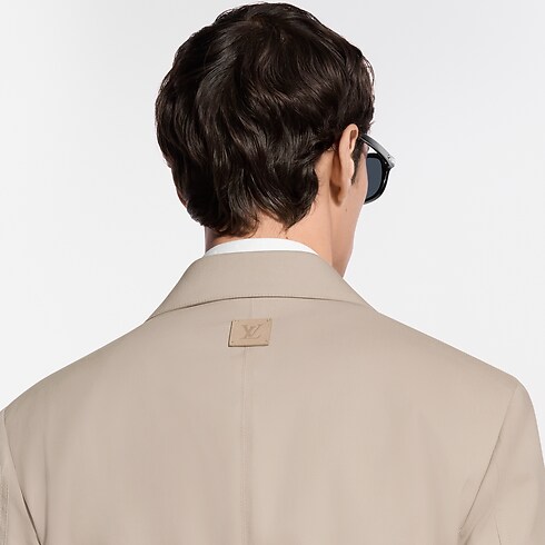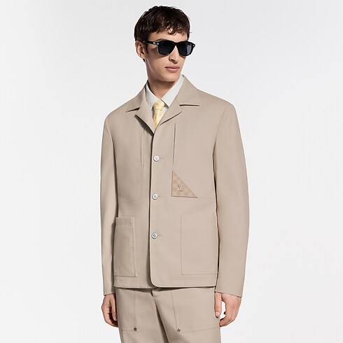 這款極簡Beige色工裝風外套,為您的正裝衣櫥增添一抹優雅現代氣息。採用順滑的棉質絲質帆布精心西裝剪裁,輕盈透氣,特別適合夏季穿著。左胸飾以同色調三角形皮革貼章,細節盡顯精緻品味。