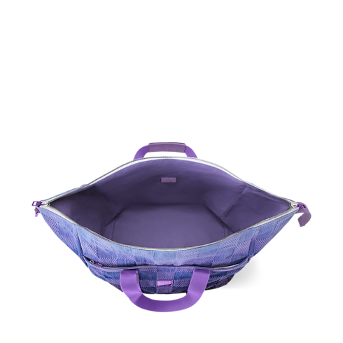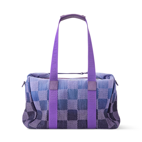 這款Cruiser Duffle靈感源自標誌性的Cruiser手袋,以更輕盈、更柔韌的Damier Pigment牛仔帆布全新演繹。Indigo色提花帆布上的棋盤格紋圖案以漸變色調設計,呈現出自然褪色與再上色的層次感。「Louis Vuitton Malletier Paris」金屬標誌點綴於其中一格Damier方格之上,為設計增添鮮明而精緻的細節。