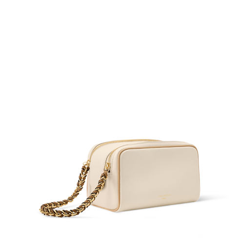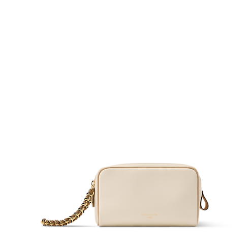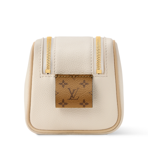 創意總監Nicolas Ghesquière為Mini Dopp Kit注入嫵媚的優雅氣息,設計選用Vanilla色小牛皮精心製作,並以金色編織鏈條點綴。雙拉鏈寬闊開口方便存取配有Monogram圖案內襯的的內部間格及拉鏈口袋,而鏈條更可將此實用袋款化身為時尚手提配飾,展現高雅格調。