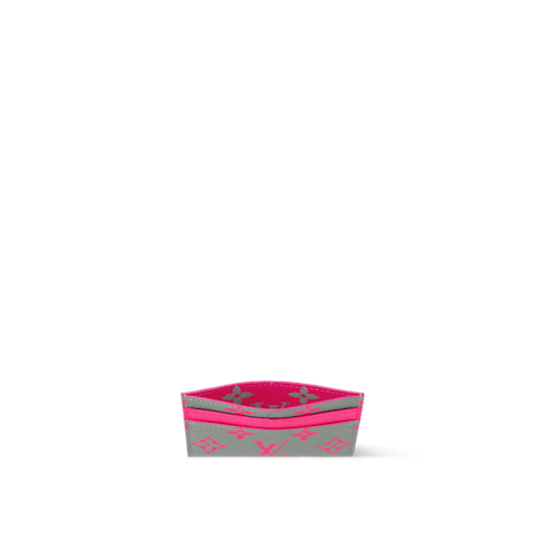 這款雙面卡片套以Monogram Glow塗層帆布製作,綴有顏色相襯的牛皮飾邊,彰顯精湛工藝, 而邊緣塗色與皮革細節則突顯圖案色調。這款口袋尺寸的配飾設有四個卡片套層和一個中央口袋,可存放票據或其他小型紙張。