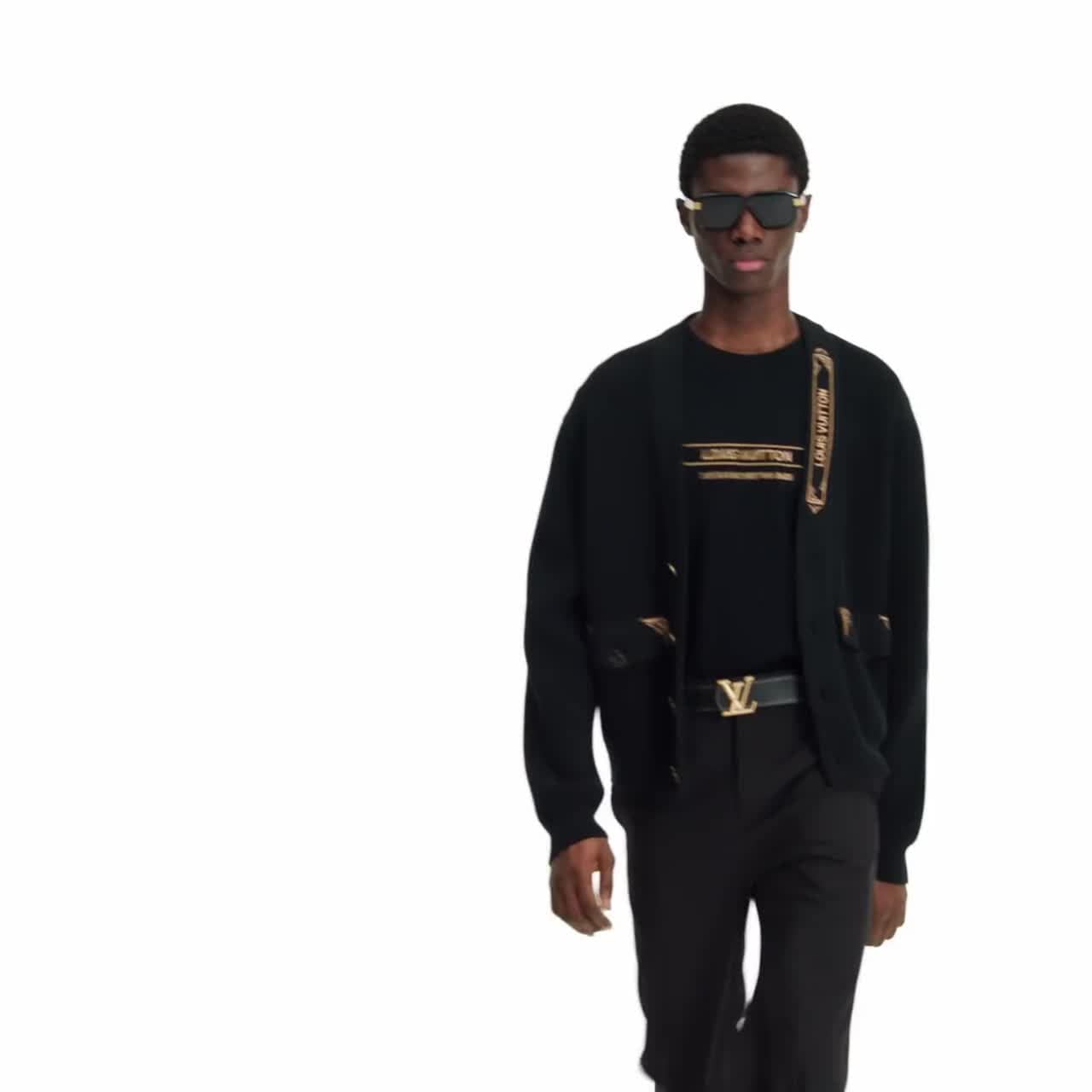 這款優雅的黑色開襟外套綴有精緻的金色刺繡裝飾,包括左邊衣領的Louis Vuitton標誌和翻蓋口袋上低調的Monogram花卉圖案細節。款式以輕盈透氣的棉質混紡羅紋針織面料裁製,適合於和暖天氣穿著,更可替代傳統外套,搭配出前衛而休閒的晚宴造型,於今季系列的遊輪上一展時尚魅力。