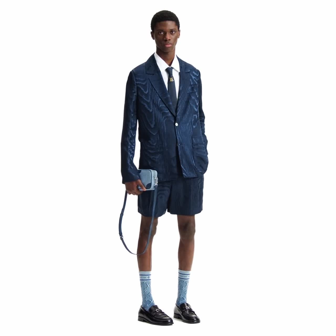這款精緻的外套結合休閒剪裁及此系列的LV Moiré圖案,在富有光澤的絲質混紡面料上以編織提花圖案呈現,再配以低調的Monogram標誌。無襯裡設計的外套剪裁流麗,並飾有珍珠母貝效果鈕扣,而背面及左衣袖則綴有標誌貼章。外套可搭配同系列的套裝褶襉短褲,締造以遊輪風格為靈感的悠閒優雅造型。