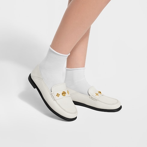 - 這款Ivy便鞋採用柔軟粒面小牛皮,為雋永便鞋注入現代感。鞋面搭帶綴以三枚金色金屬Monogram圖案吊飾,增添玩味十足的女性氣息。此款式配備輕盈橡膠鞋底,兼備舒適與靈活。