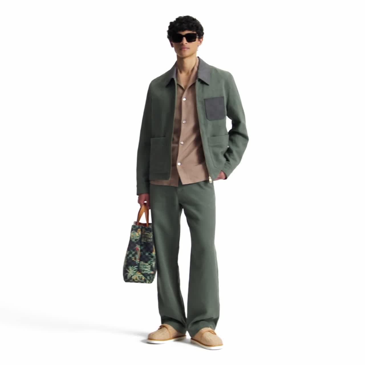 這款饒富夏日風情的深綠色長褲採用輕盈亞麻帆布裁製出簡約廓形,背面以Damier磨砂皮革標籤注入出眾格調。百搭設計可配襯日常穿搭,亦可搭配同系列工裝風外套,締造時尚套裝造型。