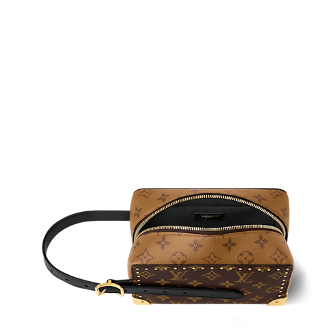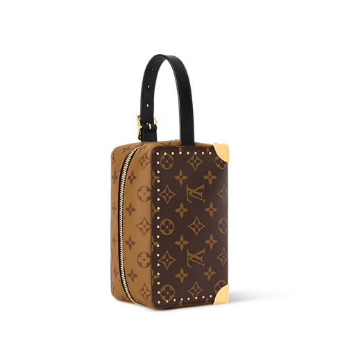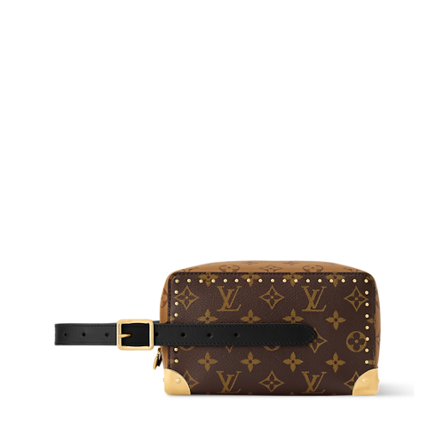 創意總監Nicolas Ghesquière隆重呈獻以Monogram塗層帆布打造的Locker Dopp Kit Trunk。袋款承襲原版設計,配有標誌性側面扣帶細節,而加固金屬包角及金色鉚釘則巧妙致敬品牌傳奇硬箱工藝。袋款內部採用Monogram Reverse圖案微纖維襯裡,盡顯精緻格調。