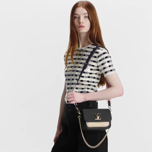 這款Lockme Tender斜背囊採用柔軟粒面小牛皮製成,除了傳統金色鏈帶外,更配有可拆式和可調節長短的寬肩帶。百搭肩帶的兩面都綴以不同顏色和質感,並飾有金屬D型圈環,可配以不同吊飾打造個人風格。