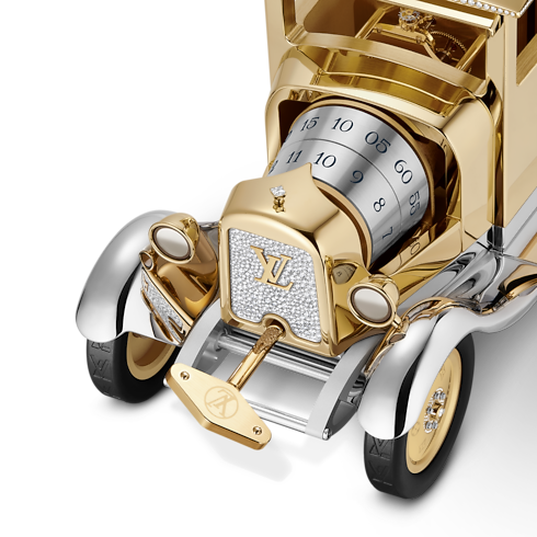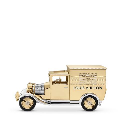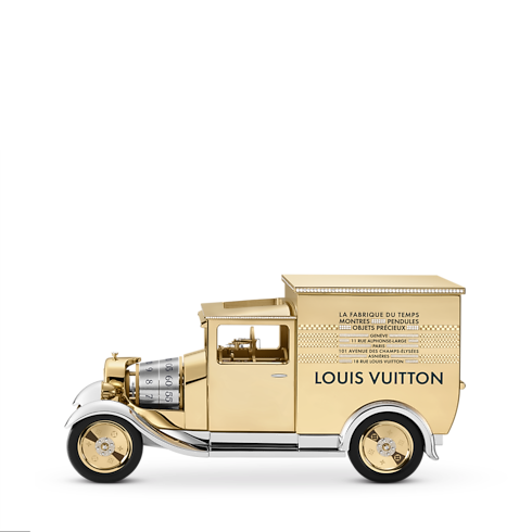 Louis Vuitton Camionnette桌鐘是製錶創新領域的非凡傑作,將品牌於鐘錶、珠寶及行李箱的精湛工藝融為一體,展現無與倫比的匠心與追求完美的精神。 設計極致精準、深思熟慮而優美,將鐘錶重新定義,昇華成為一件體現旅行藝術的唯美傑作。