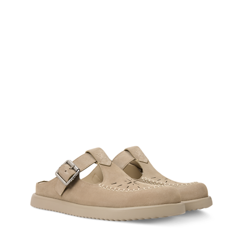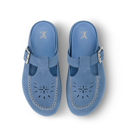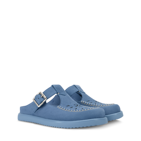 這款LV Easy拖鞋今季以小牛麂皮全新演繹,並配以Mary Jane風格T字搭帶及可調節搭扣帶,展現優雅氣質。鞋面點綴鏤空細節與明線縫製,彰顯精緻工藝美感,而標誌性細節包括T字搭帶上的LV Initials標誌,以及銀色調搭扣上的Monogram花卉圖案,而輕盈橡膠鞋底為整體設計劃上完美句號。