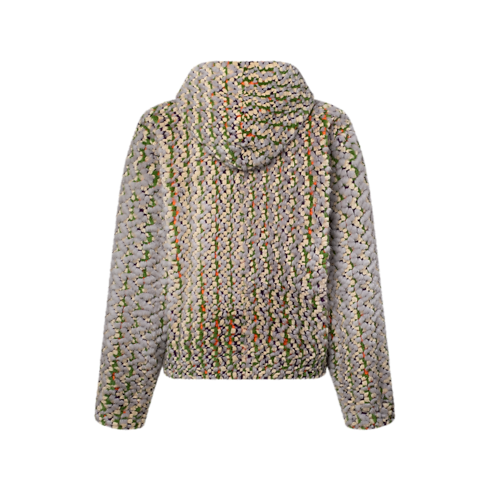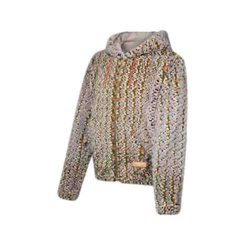 這款出自2026春夏時裝秀的貂毛連帽外套,以流暢線條將運動輪廓轉化為毛皮工藝展示。Micro Damier提花圖案運用不同長度與鮮豔色調的貂毛製成,呈現層次分明的立體質感。橙色技術性抽繩增添戶外元素,VVN色調品牌貼片則呼應Louis Vuitton經典硬箱工藝傳承。