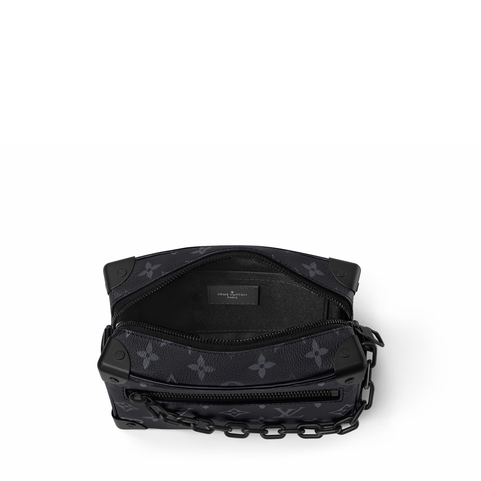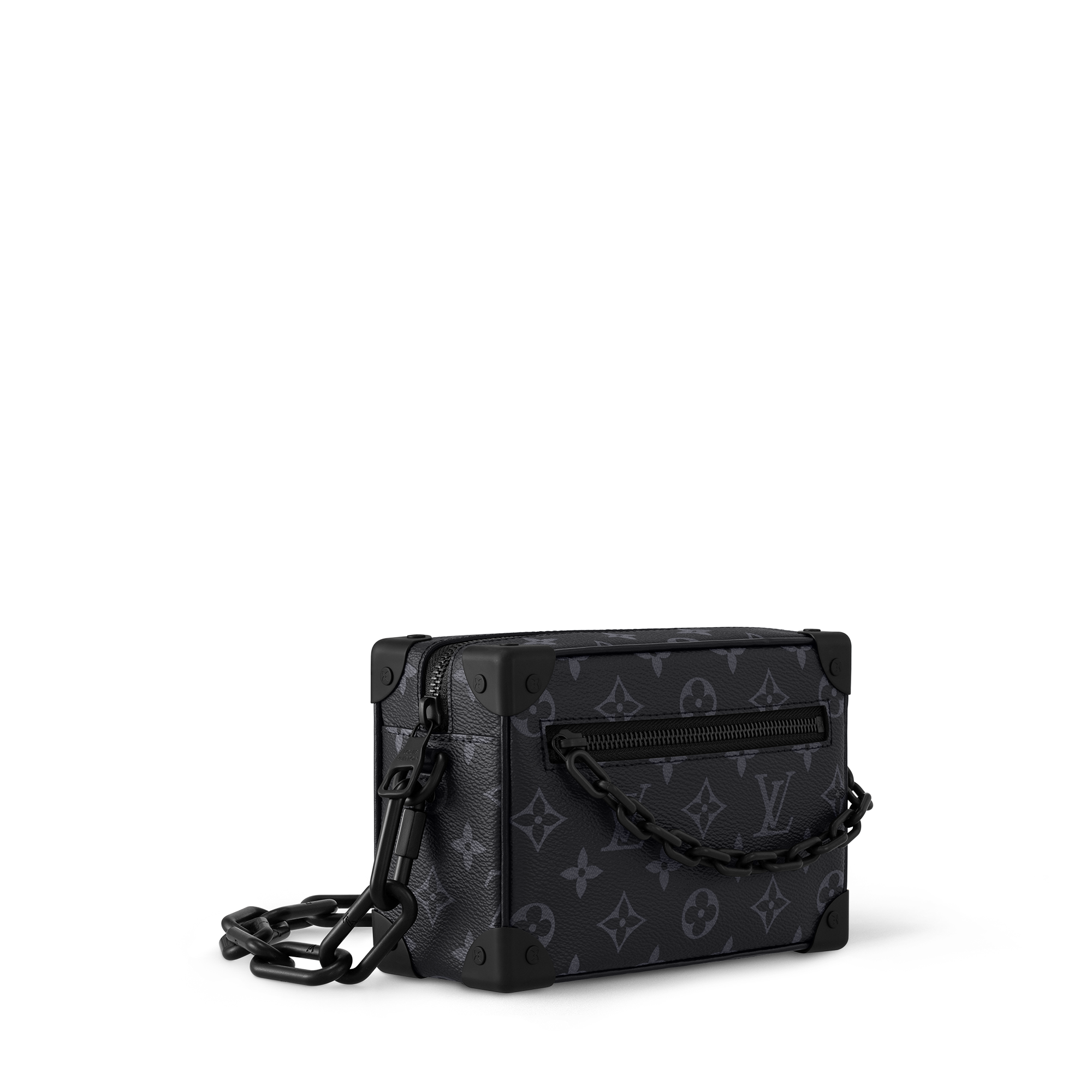 這款Mini Soft Trunk手袋由Virgil Abloh為2019春夏時裝展設計,採用Monogram Eclipse帆布製成,飾以黑色啞面樹脂鏈帶,造型稜角分明,配飾設計優雅,呼應路易威登的行李箱工藝傳統,而袋款可肩背攜帶,或作手提包攜帶。