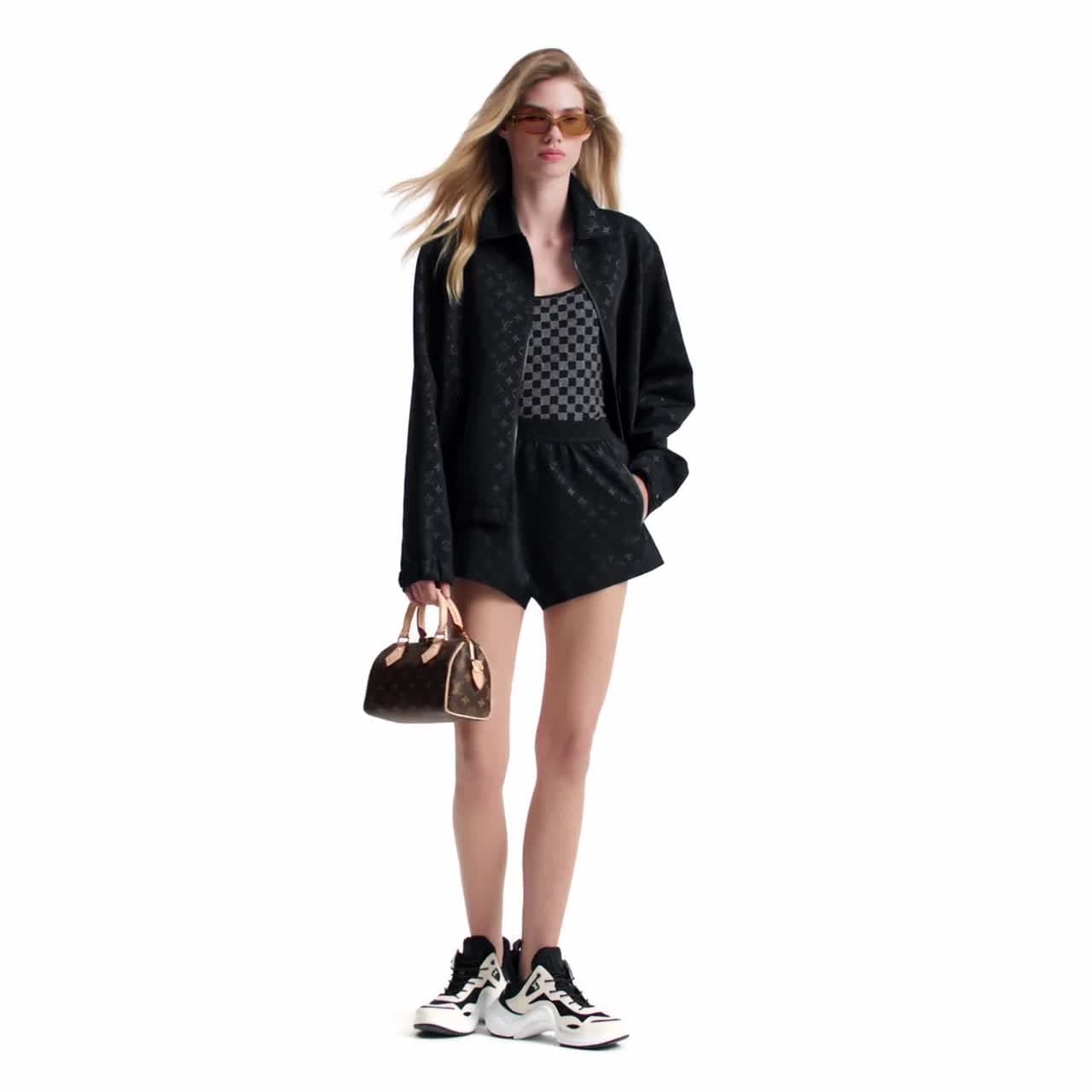 這款線條流麗的外套採用品牌標誌性的功能性針織布,低調印滿亮面同色調Monogram圖案,塑造運動風的經典格調。舒適版型配上平領設計及羅紋袖口,而正面開襟及兩側口袋均設有拉鏈。
