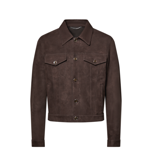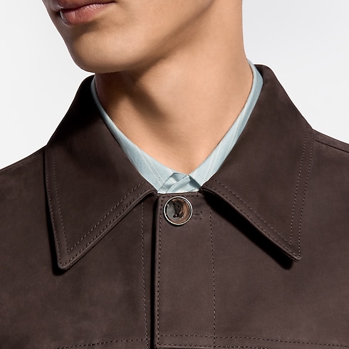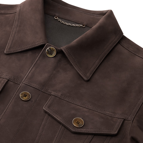 這款深啡色牛仔外套採用絲絨般柔順的磨砂小牛皮製作,更顯格調。柔軟的雙面皮革帶來輕盈結構,令外套成為轉季的百搭層次之選。扣位飾有綴以低調鐫刻Monogram花卉圖案的牛角鈕扣,而衣領背面飾以VVN皮革飾片,致敬品牌悠久的皮革精品傳統。