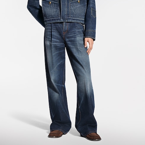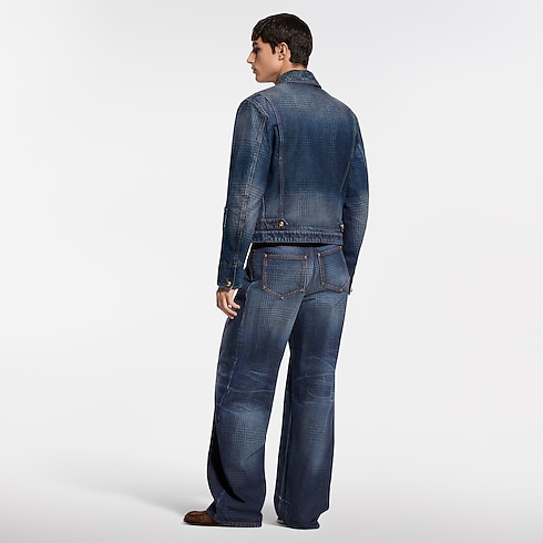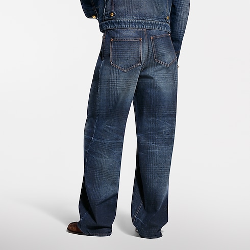 這款闊腿褲來自2026春夏時裝展,巧妙地重新演繹衣著穿搭美學,將源自經典粗花呢的格紋圖案印於靛藍牛仔布上,展現傳統與現代的完美融合。選用有機棉質布料,經過水洗處理,營造復古質感;正面褶襉剪裁勾勒優雅線條。皮革標誌細節點綴於票據口袋與皮帶位置,彰顯非凡品味。同系列外套,締造完整造型,盡顯高級時尚格調。