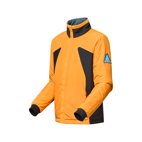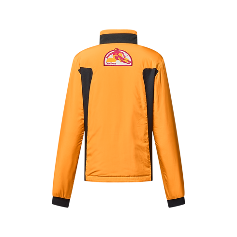 這款百搭的中層外套可單獨穿著或穿在外層滑雪外套內,以輕盈的鋪棉面料設計,可雙面穿著,一面是中性灰色調,另一面則展現鮮明的橙色造型。灰色一面的黑色側面拼布綴滿同色調Monogram圖案,而橙色一面則綴有滑雪風格刺繡標誌貼章,締造復古的運動風格。
