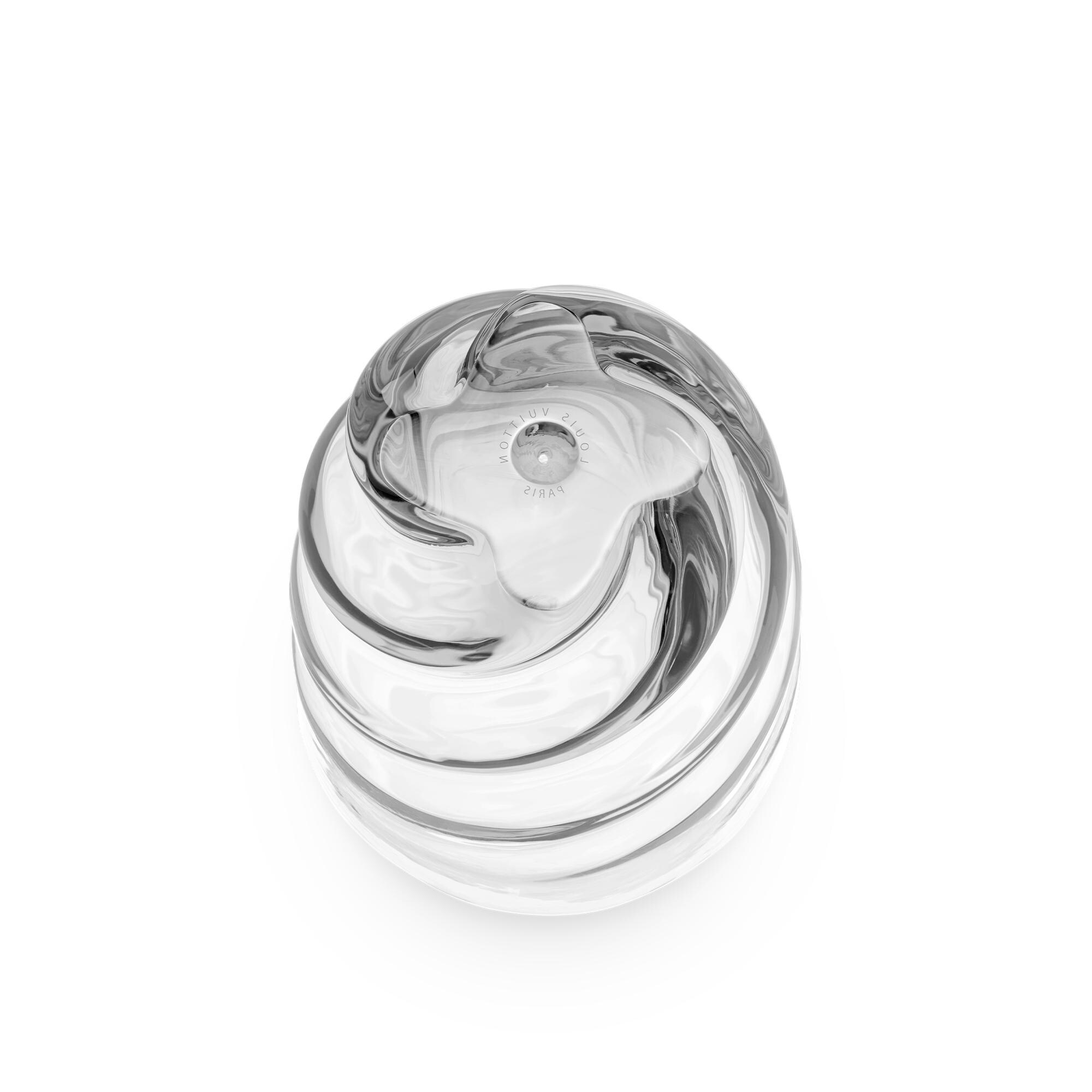 手工吹製的玻璃杯於意大利穆拉諾製作,重新演繹經典 Monogram 花卉圖案。透明玻璃杯以五種色彩設計,兩件套裝呈 Cristal Clear 單色,四件套裝呈四種繽紛色調。光線照射下,玻璃水杯透澈晶瑩,漩渦形狀展現光影動態。