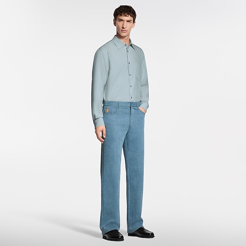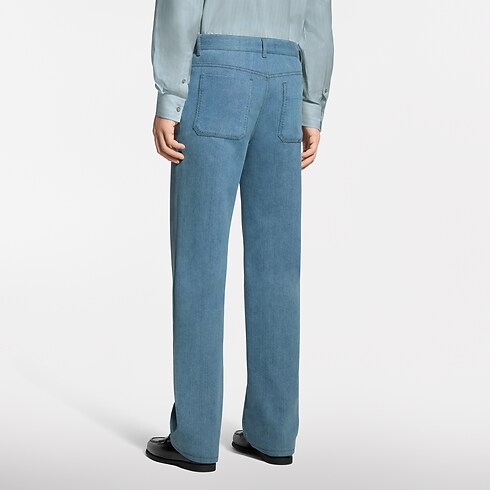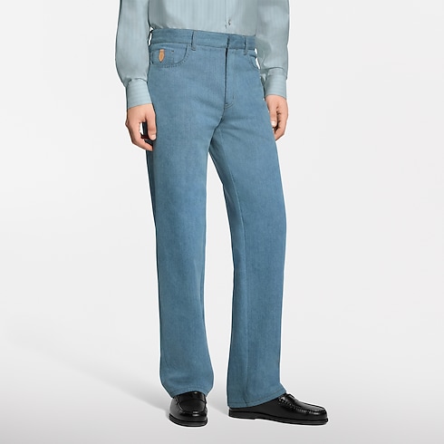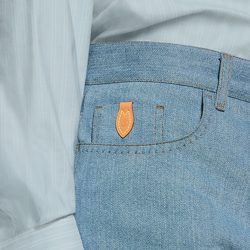這款低調奢華的長褲採用日本頂級工坊出品的棉質絲質斜紋布製成,重新演繹牛仔布風格。挑縫縫線細節為衣著穿搭增添細膩格調,而票據口袋則飾有VVN皮革標誌飾片。設計配上充滿春日氣息的淡雅水洗Indigo色調,可搭配同系列的套裝外套,打造整體造型。