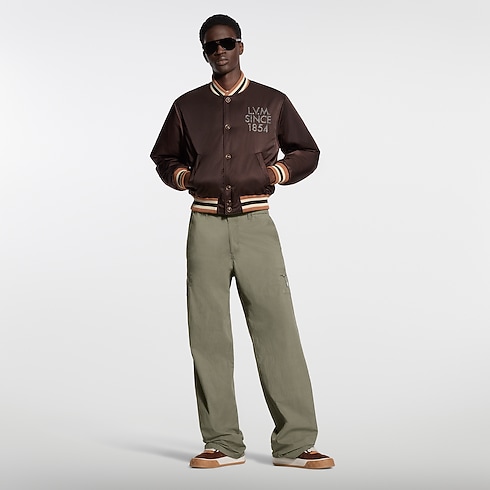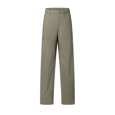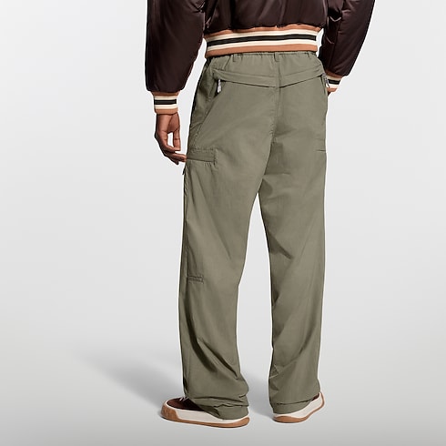 這款Khaki色工裝風長褲彰顯2026年春夏系列時裝展的時尚登山主題,選用功能性皺褶面料,並配備多個口袋。舒適的背面彈性褲腰設計配有內置抽繩,以便調節鬆緊,左邊褲管繡以L.V.M. Legacy標誌,演繹雋永而實用的風格,完美搭配日常造型。