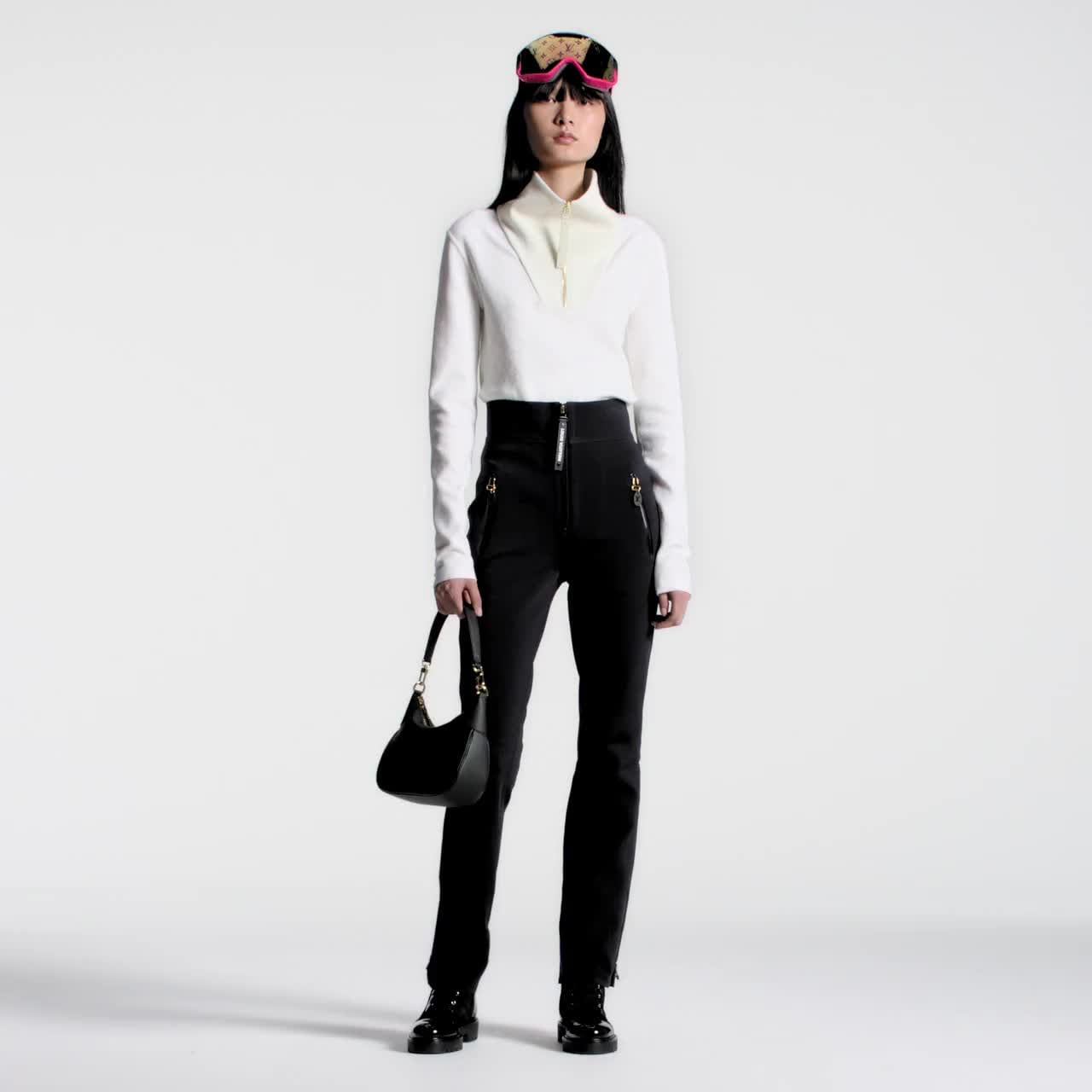 這款精緻的運動風滑雪長褲以功能性針織布製作,流麗的合身剪裁搭配塑形高腰及微喇叭褲管,締造修長廓形。長褲配有實用拉鏈口袋及拉鏈褲腳細節,設計百搭多變,而幾何風Louis Vuitton標誌拉鏈頭則為造型增添標誌性格調。