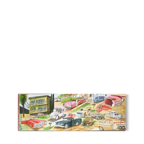 Louis Vuitton Travel Book 旅遊書系列帶領您穿梭虛實之間的旅程,一眾著名藝術家和才華洋溢的年輕畫家,將遊歷不同國家和城市的所見所聞,以插畫活靈活現於書中。當中的創意世界多采多姿,這些來自世界各地的藝術家在旅途中恣意選擇表達的方式,如繪畫、插畫、拼貼畫及漫畫等。洛杉磯旅遊書限量發行30本,每本均附編號及藝術家簽名。這本大型皮革精裝本隨附Javier Mariscal創作的絲網印刷畫作。