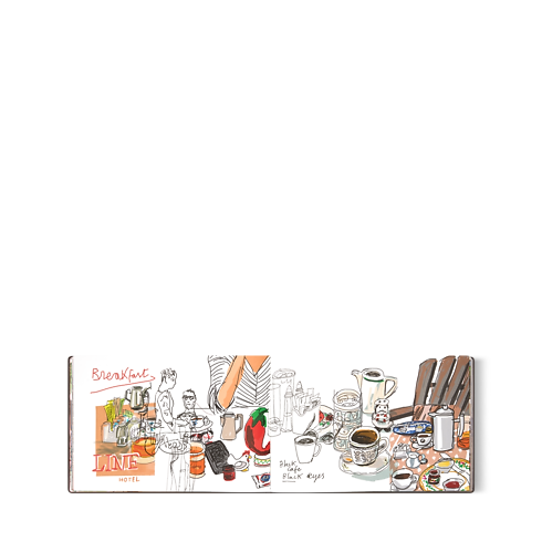 西班牙藝術家Javier Mariscal熱愛加州,當地晴朗的藍天和明亮的日光令他憶起自己的家鄉華倫西亞。他雖然已曾五次到訪洛杉磯,但仍然對這個地方充滿好奇,並隨意在筆記本或iPad上描繪所見的人與事及風景。然而,他對洛杉磯最感興趣的,莫過於當地隨處可見的霓虹燈、標語、店舖標誌、大型廣告牌及圖標。他的繪圖輔以豐富多變、別具一格的字型設計,令他筆下的世界更見活力。
