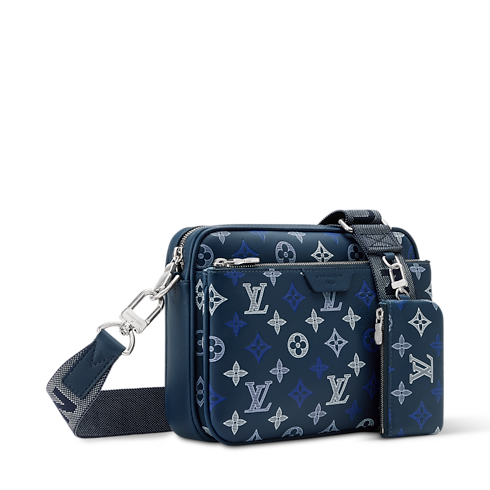 這款Trio郵差包以Monogram Shadow小牛皮製造,運用三重絲網印刷技術呈現漸變效果的Monogram圖案。此多功能袋款於正面設有大型貼袋,肩帶上配有尺寸小巧的可拆式零錢包,而紡織肩帶採用可調節及可拆式設計,能靈活轉換肩背或斜背攜帶。