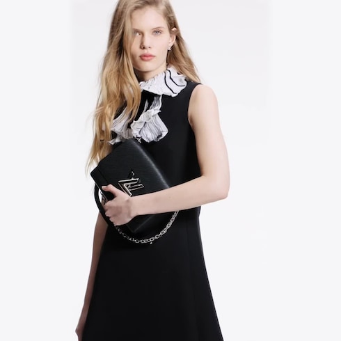 這款Twist MM鏈帶手袋以品牌經典的Epi皮革製造,採用全新的標誌性LV轉鎖,閃亮的金色金屬標誌別具挺括美感。巧妙的「波浪型」底部設計令容量格外寬敞,日夜攜帶皆宜。滑動式鏈帶肩帶可重疊作肩背攜帶,亦可延長作斜背攜帶。這款Twist手袋於2015初春時裝展亮相,是品牌的全新經典之作。