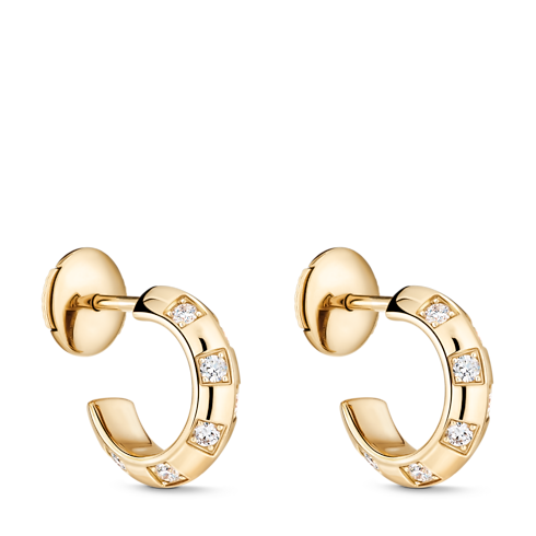 以白金、黃金或玫瑰金雕琢而成的閃爍耳環和吊墜,以幾何鑲嵌設計形成無限重複的懾人效果,並以品牌的經典元素點綴,風格鮮明出眾。