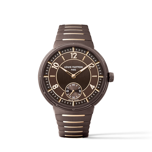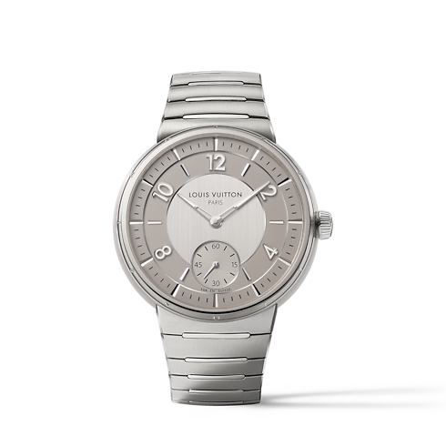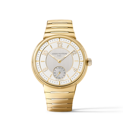 The Maison’s emblematic Tambour watch is reinvented with an elevated unisex design featuring a slim case, a first-of-its-kind integrated bracelet, contrasting finishes and an exclusive automatic movement designed by La Fabrique du Temps Louis Vuitton.