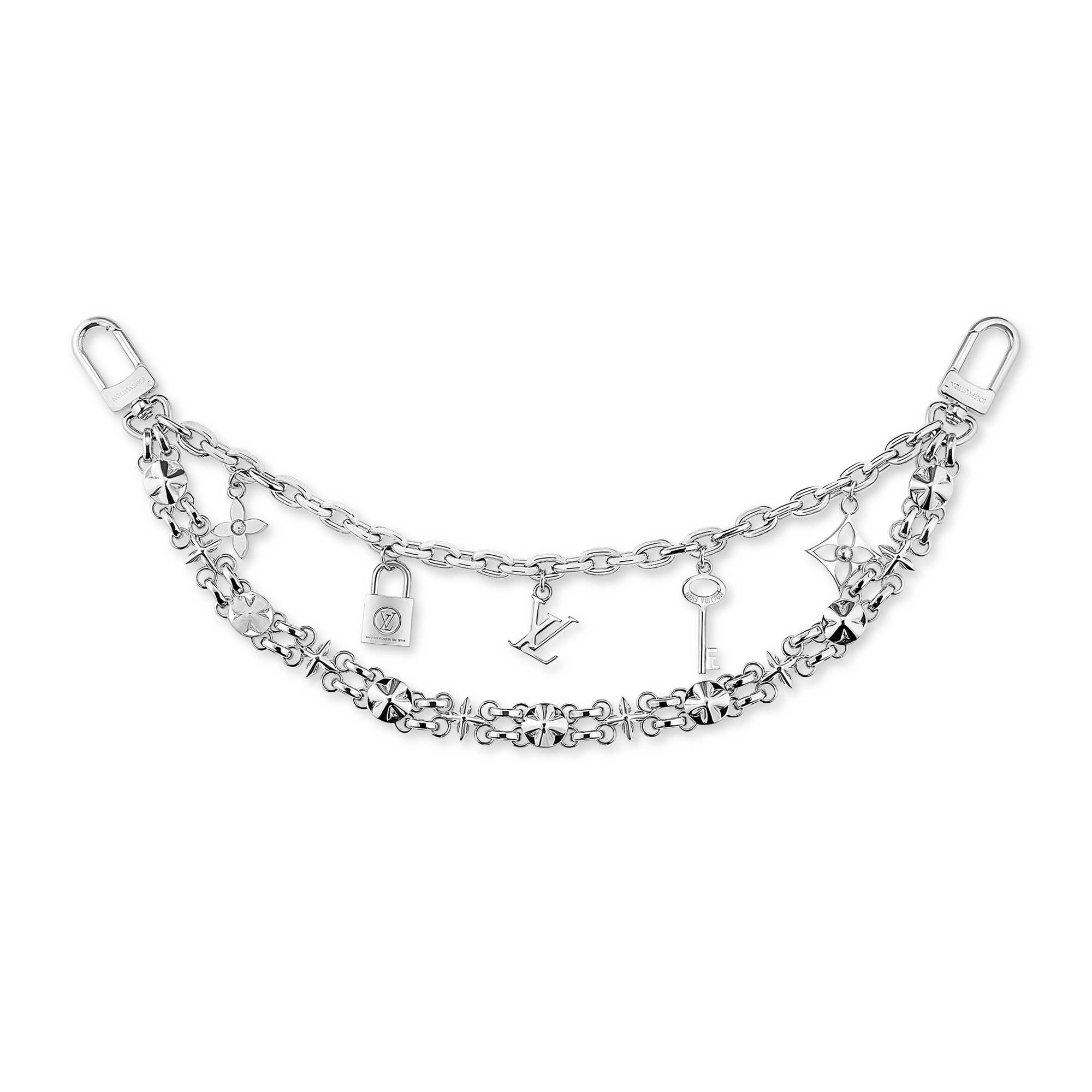 路易威登為女士們精製多款鎖匙扣及小飾物,完美點綴女士手袋或行李袋。鑰匙扣和吊飾在經典 LV initials 標誌及 Monogram 圖案中注入創新元素,備有品牌吉祥物、迷你版手袋、金屬鏈帶、天然牛皮裝飾和零錢包。鎖匙扣及掛飾款式造工細緻,令整個系列至臻完美。