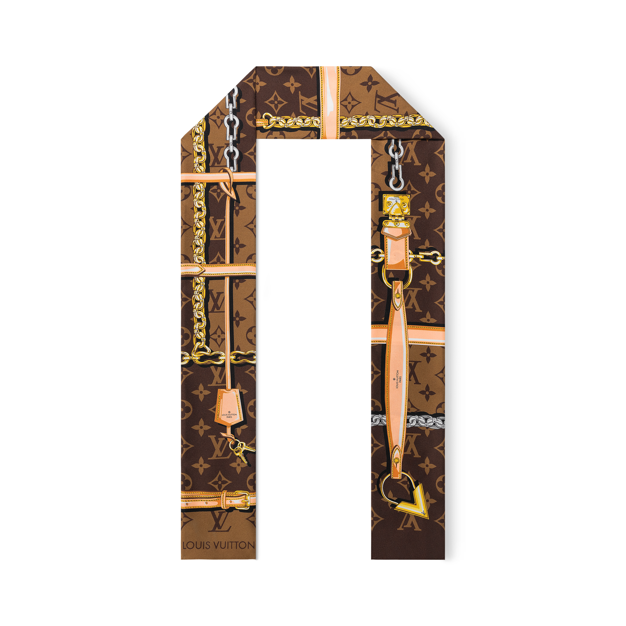 路易威登的女士絲巾及方巾是品牌最受歡迎的配飾之一。精品絲巾以純絲縫製,呈方巾或長絲巾形態。品牌經典 Monogram 、 LV initials 獨特標誌和藝術印花,在絲巾上互相交織成獨特圖案,展現時尚的當代風格。絲巾可繫於頸間、腕間、包袋或頭髮上,化為不同的優雅配飾,搭配整體造型。