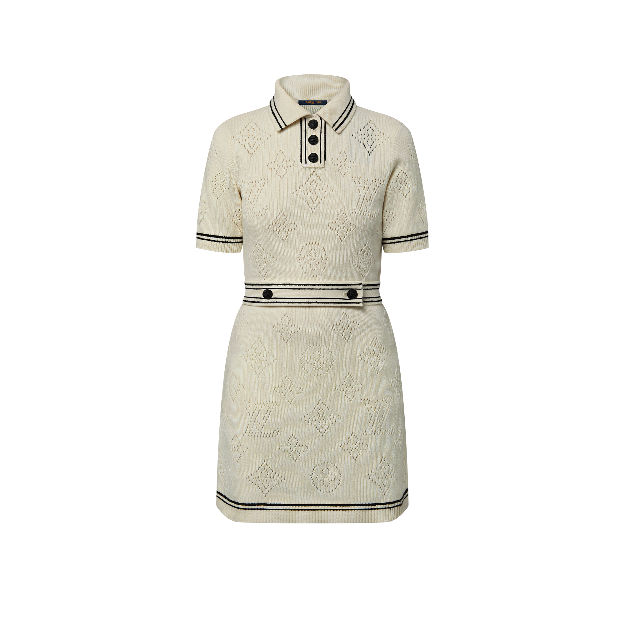 Monogram 花卉圖案毛巾面料 Polo 連身裙